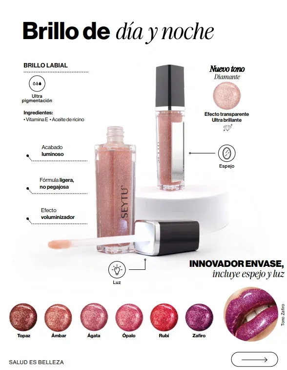 La nueva fórmula de los Brillos de Seytú se funde sobre los labios proporcionando un inigualable brillo con efecto voluminizador, en una increíble gama de colores para tus labios.